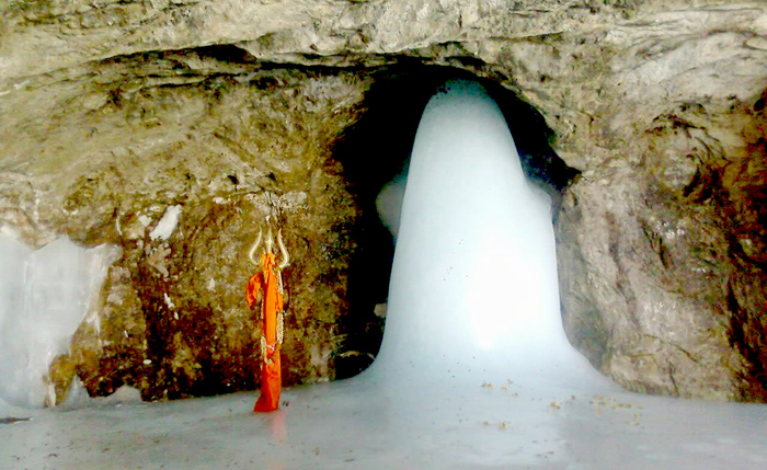 Amarnath cave is a famous shrine in Hinduism located in the Indian state of Jammu and Kashmir. It's dedicated to Shiva. The cave can be found at an altitude of 3,888 m (12,756 ft), about 141 km (88 mi) from Srinagar, the main city of Jammu and Kashmir and reached through Pahalgam town. The shrine forms a fundamental part of Hinduism, and is considered to be one of the holiest shrines in Hinduism.